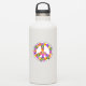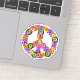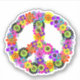 Um sinal de paz floral em tons de rosa, turquesa, amarelo, laranja, roxo, verde e preto.