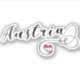 Etiqueta personalizada de corte de design de letra com script. Com uma bandeira austríaca no coração.