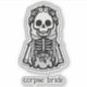 Este é um belo adesivo de halloween com "tema horror" com uma ilustração de uma noiva de esqueleto com um texto personalizável.