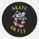 design de Halloween legal e assustador com esqueleto de snowboard e a citação de "Skate ou Voo". Um jogo perfeito para a próxima festa de Halloween.