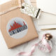 As características de design da skyline da Nova Iorque uma representação gráfica da skyline de Manhattan e a estátua da liberdade em uma cor vermelha corajosa. Abaixo da skyline e da senhora Liberdade, as palavras New York estão em uma pia batismal corajosa em duas máscaras do cinza, em um fundo azul escuro. Atrás de New York a skyline e a senhora Liberdade são um teste padrão redondo de raios gráficos do sol em uma máscara da luz - azul. Se você ama New York então o design da skyline da Nova Iorque é a escolha perfeita!