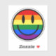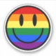 Este trabalho de arte colorido apresenta um smiley face arco-íris.