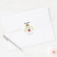 Este lindo anjo de neve com um chapéu colorido brilhante na sua cabeça e um coração na sua mão.