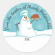 Um cozinheiro de neve vestindo um chapéu de chef e carregando uma placa de peru assada neste personalizado "da cozinha de", "da minha cozinha" ou "casado por" para um adesivo de Natal para dar suas comidas, doces e doces deliciosos.