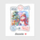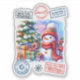 Um encantador adesivo de Natal mostra um boneco de neve festivo segurando uma bebida quente em meio a presentes coloridos e uma árvore decorada. A cena viva é cercada por selos brancos, acrescentando um toque lúdico ao espírito de feriado e alegria da estação.