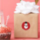 Um adesivo redondo com um design bonitinho de neve e o texto, "Feliz Natal!" Perfeito para colocar cartões de Natal ou presentes!