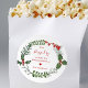 Um belo verde-aquarela e arruelas vermelhas armam sua mensagem neste adesivo de feriado. A etiqueta tem tipografia elegante, e há espaço para personalizar.