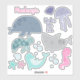 Esta folha autocolante sob o mar apresenta uma baleia, tubarão, geleia, tartaruga marinha e cavalo marinho. Personalizado com o nome do seu filho.