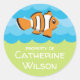 Etiquetas de nomes bonitos para crianças que apresentam um peixe palhaço sob o tema do mar. Um design divertido para as crianças, ideal para rotular os artigos de papelaria da escola e outros itens relacionados à escola. Textos e cores verdes de fundo são personalizáveis. Use as ferramentas de cor de fundo do zazzle para mudar a cor verde para a cor preferida. Visite a minha loja para ver outras etiquetas na coleção do mar.