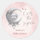 Estamos sobre a lua, elegantes chás de fraldas celestiais em cinzas cor-de-rosa e prata com lua decorada e a face do bebê, diamantes e poeira estelar. Etiquetas de chá de fraldas, personalize facilmente o texto. - Kate Eden Art