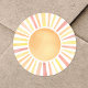 Este design de adesivo redondo apresenta um simples sol rosa no centro, radiando com raios suaves e alegres. Sem palavras, é perfeito para um chá de fraldas, uma primeira viagem ao redor do aniversário do sol, ou qualquer pessoa que ame uma vibração ensolarada, de verão. A design é limpa e mínima, focada no calor e energia do sol. Totalmente personalizável, este adesivo pode ser usado em várias ocasiões, acrescentando um toque brilhante e alegre às suas celebrações. Perfeito para favores, decorações ou um simples gesto ensolarado.