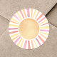 Este design de adesivo redondo apresenta um simples sol rosa no centro, radiando com raios suaves e alegres. Sem palavras, é perfeito para um chá de fraldas, uma primeira viagem ao redor do aniversário do sol, ou qualquer pessoa que ame uma vibração ensolarada, de verão. A design é limpa e mínima, focada no calor e energia do sol. Totalmente personalizável, este adesivo pode ser usado em várias ocasiões, acrescentando um toque brilhante e alegre às suas celebrações. Perfeito para favores, decorações ou um simples gesto ensolarado.
