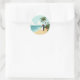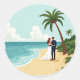 Inclui 20 adesivos pequenos em uma folha. Uma ilustração romântica de um casal se beijando em uma praia serena, cercada por palmeiras e o mar calmo, perfeito para adicionar um toque de amor a qualquer espaço.