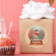 Um sundae sorvete em um copo, gotejado com xarope e mergulhado com uma cereja, é encaixado na neve nesse globo de neve. Excelente para a confecção ou recolha. Personalize se quiser.