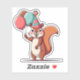 Adicione um toque de reluzente e alegre aos seus pertences com este adesivo com um esquilo fofo vestindo um chapéu de festa de aniversário e segurando um punhado de balões com sua pequena pata.