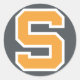Supporterklistermärke gult s på grå bakrund, rund, glansig