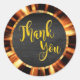 Cartões de agradecimentos preto riscado em papel adesivo em ouro para aparecer no convite para o casamento.