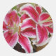 Uma bela imagem de Star Gazer Lily em um adesivo redondo.