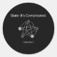 This classic round programmer sticker features the phrase “State: It’s Complicated.” paired with a minimalist abstract state-flow diagram, designed specifically for dark background printing.