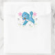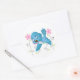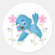 Este adesivo redondo é mostrado em branco com um impressão de pássaro azul e flores cor-de-rosa. Personalize este item ou comprar como está.