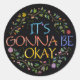 Quer você o coloque em um diário ou na parte externa do seu laptop ou na frente da geladeira, este adesivo certamente trará um sorriso e um lembrete de que vai ficar tudo bem!