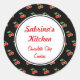 Um padrão vermelho brilhante de cereja decora esses adesivos retrorreflectores. Personalize esses adesivos para atender às suas necessidades. Use estes autocolantes para uma padaria, cozimento, produtos cozidos, negócios, cozinha, comidas, artesanatos, produtos, embalagens, etc...O design é da arte original.