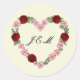 Perfectly seal your wedding invitations with these elegant round stickers. This design features a romantic Rose Heart wreath on a soft cream background, with classic black typography for your initials.