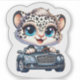 Adesivo Stickers Cute Kawaii Snow Leopard Big Cat Driving