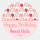Celebre ocasiões alegres com este encantador adesivo redondo adorado com morangos vibrantes, arco-íris radiantes e flores coloridas cor-de-rosa. Perfeito por adicionar um toque balbucioso aos seus presentes e espalhar alegria.