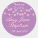 AS LUZES DE CORDA PINTAM OS PINTOS DE BAPTISM CHRISTENING STICKERS. Este batismo bonito, rústico, batizando ou primeiro adesivo de comunhão apresenta luzes de cordas cor-de-rosa e uma bela caligrafia branca com sombra rosa. Personalize com seu próprio nome, data e mensagem do bebê. Projetado por Piglet © Pura em www.zazzle.com/purepiglet*.