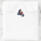 Man in a leather jacket riding a classic motorcycle. Dynamic pose, bold colors, and a playful backdrop convey freedom, adventure, and street-ready style.