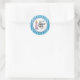 Um obrigado que você cola com uma imagem aquosa de um farol listrado vermelho. Com tipografia que diz: Sua luz brilha. Obrigados de ser incrível. Coloque dentro um círculo de aparência náutica. O pano de fundo é um padrão listrado azul.