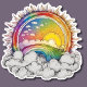 Este adesivo tem um abstrato gráfico cativante que simboliza esperança e brilho. Este adesivo único apresenta um sol feito de arco-íris vibrantes surgindo sobre nuvens de cinzas, oferecendo um contraste impressionante que representa vencer desafios e abraçar o otimismo.