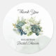 Composições delicadas de aquarela floral de suculentas, rosas e galhos verdes. Adesivo Redondo Clássico Agradecimento Chá de Noiva. Celebre com esta coleção exclusiva