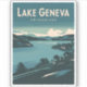 Descubra a beleza serena do lago de Genebra, Suiça com esse design captivador de viagem. Infundido com nostalgia e charme safado, esse design captura a tranquilidade e o charme do lago de Genebra em uma estética retrorreflectora que lembra posteres de viagens clássicos de ontem.