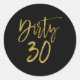 Pau de aniversário de 30 folhas preto e dourado. O adesivo Dirty 30 usa a popular tipografia de folhas de ouro. Este adesivo é usado para selar os envelopes de 30 anos sujos.