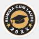 Dourado e negro, o adesivo da risada Summa Cum com boné de formatura, personalize facilmente o ano de formatura do seu aluno de honra.