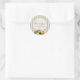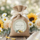 This sunflower wedding favor sticker is a charming and elegant way to add a personalized finishing touch to your special day. Featuring a soft arrangement of golden sunflowers, ivory blooms, and greenery along the bottom, paired with a warm cream background and sage striped circular border, it perfectly complements rustic, garden, and countryside wedding themes.