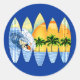 Arte de surfe no estilo mural em pranchas de surfe lado a lado em vez de uma parede.
