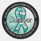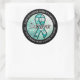 Button with a teal and white flowers SA sexual assault awareness ribbon. For those who have survived abuse and assault.
