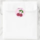 Um design divertido de cerejas suculentas escuras com folhas verdes escuras e caules.