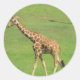 Girafa andando em volta do adesivo.