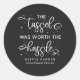 Um adesivo de favores divertidos e modernos, com texto de tipografia, com uma citação inspiradora que diz "a moda valeu a pena", com baloiços.