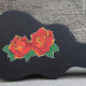 Duas rosas vermelhas desenhadas num estilo de tatuagem.