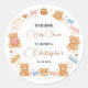 Add a sweet and playful touch to your baby shower with this adorable teddy bear baby shower boy sticker. Featuring a cute bear design with soft blue tones, it’s perfect for a teddy bear themed baby shower. Use it on invitations, favor bags, treat boxes, or decorations to tie your theme together. Personalize with a name or short message for an extra-special touch. A charming little detail that makes your baby boy baby shower celebration even more memorable and fun for guests.