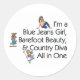 Ei, se você é uma menina de ameaça tripla que ama seus jeans azuis, andando descalço, e sendo uma diva puramente country, então esse slogan legal é certo para você. Sou uma Jeans Azul Menina, Bela Descalça, e Diva do Campo Tudo em Uma em t-shirts para a escola, camisas para a fazenda, tampas de tanques para a feira do condado, autocolantes para-choques para a coleta ou posters para a sua casa.