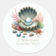 Sele suas convites de chá de bebê com um toque de elegância inspirada no oceano usando este adesivo de envelope tema pérola! Com uma concha lindamente detalhada com uma pérola brilhante dentro, cercada por coral delicado e detalhes marinhos, este adesivo adiciona um charme costeiro refinado à papelaria do seu evento. A estética de aquarela suave e a tipografia elegante que diz "Uma pequena pérola está a caminho!" tornam-no o toque final perfeito para chá de bebê com tema subaquático ou náutico.