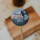 Projetados para combinar nossos convites de festas de aniversários de escalada de rock no On The Edge, esses adesivos personalizados divertidos e aventureiros apresentam um escalador de rocha em uma montanha com uma floresta abaixo. "Parabéns [nome]" aparece em letras robustas. Excelente para selar envelopes de convite ou adicionar a favores.