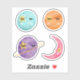 Twinkle Twinkle estrelas pequenas e personagens de planeta. Vestidos de personagens adoráveis e doces e brilhantes planetas cintilantes. Os quatro planetas têm olhos adormecidos bonitos com bochechas e sotaques estelares. Cada personagem do planeta é colorido em um estilo aquoso brilhante com sotaques dourados falsos. Todas as ilustrações contidas no nosso conjunto de adesivos planetários com caráter de brilho cintilante são obras de arte originais desenhadas à mão pela Moodthology.