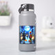 Caros adesivos do Dia das Bruxas com arte ai retratando um menino e uma menina em um palhaço e um traje de bruxa saindo da casa para encontrar um monstro assustador no final de sua calçada.